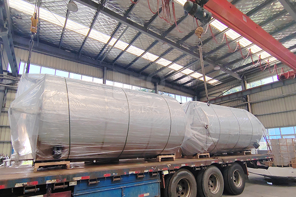 山東乳品廠定制的2臺(tái)立式制冷罐出貨現(xiàn)場(chǎng)